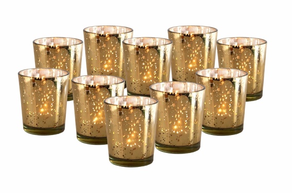 1Świecznik na tealighty Filiżanka nakrapiana złota świeca 10 szt + 1 gratis