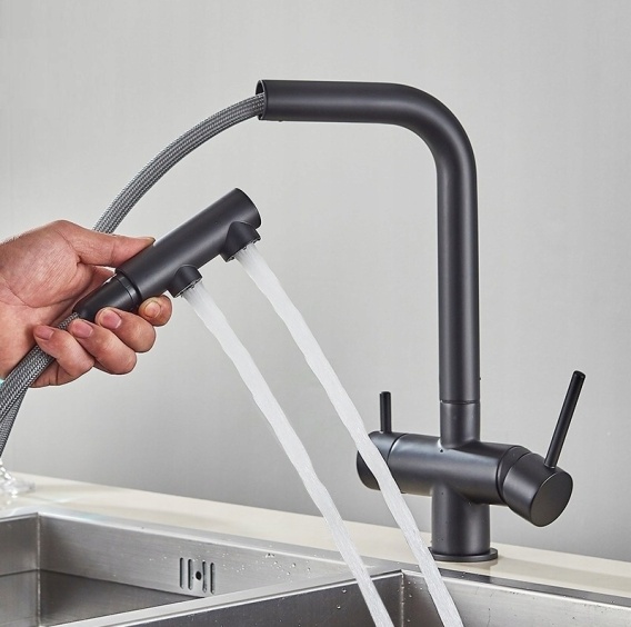 Bateria Kuchenna Trójdrożna do Filtra czarna Wyciągana Wylewka