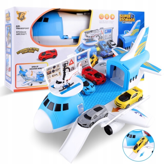 DUŻY SAMOLOT TRANSPORTOWY ROZKŁADANY Otwierany - 5 samochodów + helikopter w zestwie