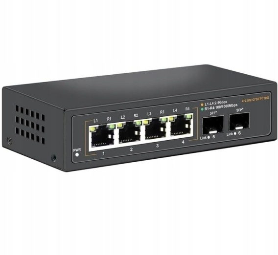 Dzięki4 portom 2.5Goraz2 slotom SFP 10Gprzełącznik Davuaz zapewniastabilne i ultraszybkie połączenia. To doskonałe rozwiązanie dla użytkowników pracujących z dużymi plikami, serwerami NAS czy transmisją wideo w wysokiej rozdzielczości.