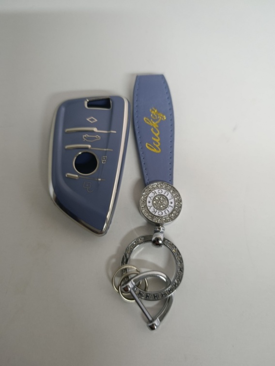 ETUI na KLUCZYK SAMOCHODOWY do BMW POKROWIEC na PILOTA NIEBIESKI+ Brelok ozdobny