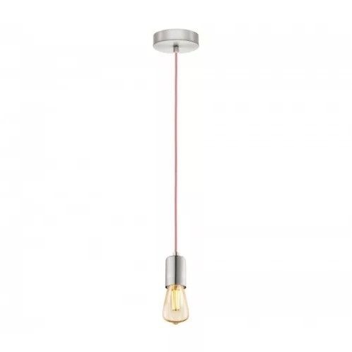 Producent: EGLO Model: Yorth Rodzaj: lampa wisząca pojedyncza Styl: loft / industrial / minimalistyczny / nowoczesny Kolor oprawy: stal szczotkowana (srebrny) Kolor przewodu: blady róż Materiał: metal, tworzywo Źródło światła: 1 x E27, max 60W (żarówka nie dołączona) Zasilanie: 220–240V Wysokość całkowita: ok. 110 cm (regulowana) Średnica podsufitki: ok. 10 cm Stan: nowa
