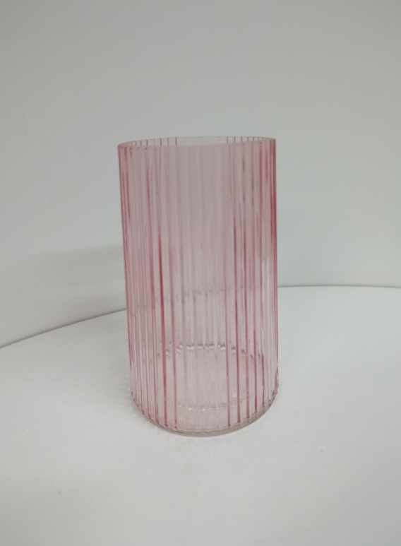 Elegancki różowy wazon ze żłobionego szkła – 20 cm