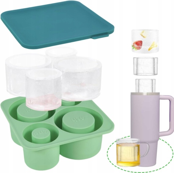 Foremki do lodu, tacka silikonowa z pokrywką, kostki do kubka termicznego