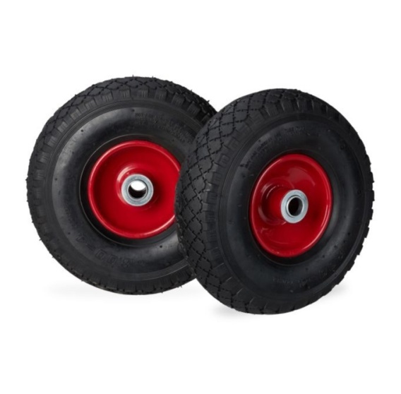 Wyposaż swoją taczkę w 2 nowe, pompowane koła i z łatwością przewoź ciężkie przedmioty z punktu A do punktu B. Zapasowe kółka z oponami 3.00-4 wyposażone są w wytrzymałą stalową felgę, wyprofilowany bieżnik oraz kulkowe łożyska, które znacznie zwiększają komfort jazdy. Opony doskonale amortyzują uderzenia, dzięki czemu nie musisz obawiać się już pchania taczki po wyboistych powierzchniach w ogródku. Wentyl samochodowy umożliwia ponadto szybkie pompowanie gumowych kół.
