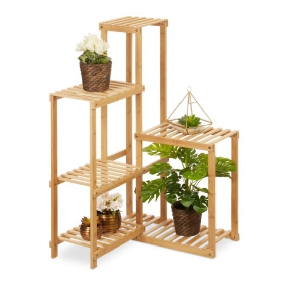 Kwietnik Narożna półka na rośliny, bambus, stojak na kwiaty Relaxdays