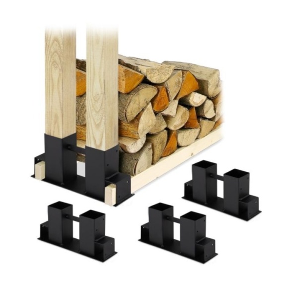 Solidny zestaw 4 elementów pozwala stworzyć funkcjonalny stojak na drewno opałowe – idealny do garażu, piwnicy lub na ścianę domu.