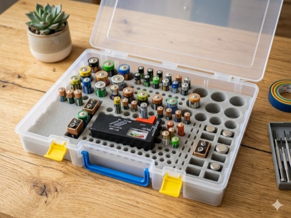 Ogromna pojemność: Specjalne przegródki na różne rodzaje baterii: