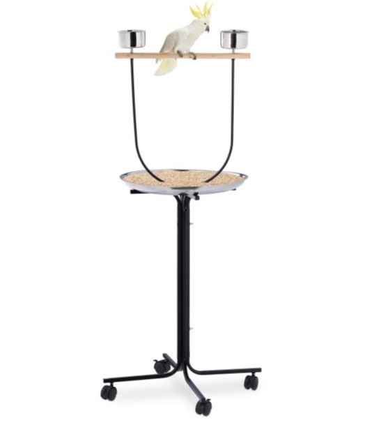 Cały dzień spędzony w klatce nie jest przyjemnością dla papużek falistych, papużek nimf i innych gatunków papug. Dzięki siedzisku zapewnisz swoim pupilom miłe miejsce do odpoczynku poza klatką. Drewniana sztanga dla ptaków to idealne miejsce do lądowania i siedzenia, a 2 wbudowane miski zapewniają pożywienie w postaci ziaren, owoców lub wody. Dzięki praktycznej tacki na dnie resztki pokarmu i odchody są zbierane, więc nie musisz martwić się o zabrudzenie mieszkania.