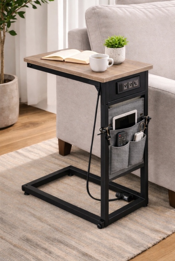 Stolik boczny z gniazdkiem i organizerem – idealny do sofy
